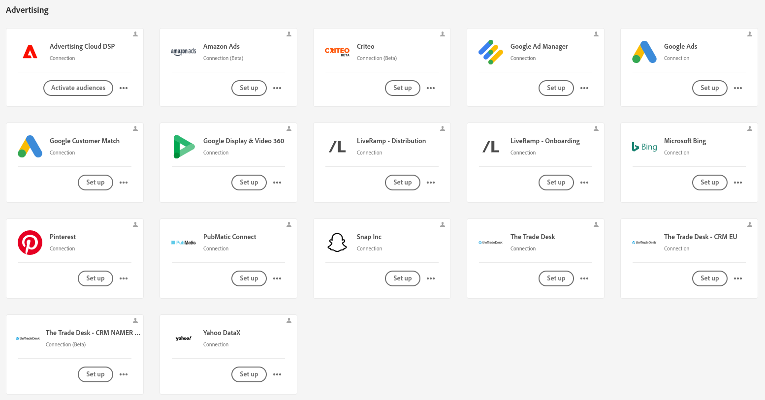If you have a CDP like AEP, this diversification is very easy. You can create a segment and share it with any of the supported destinations. The only condition is to make sure you have the keys the destination requires. As an example, at the moment of writing, AEP has out-of-the-box integrations with:
